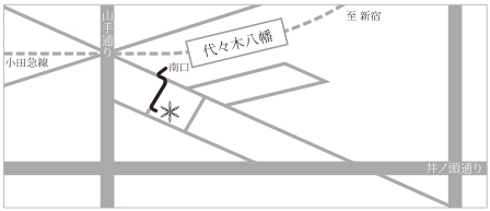 代々木八幡駅南口を出て左斜め向いの焼き鳥屋角を右折、